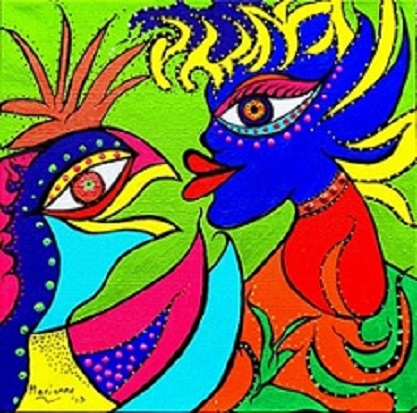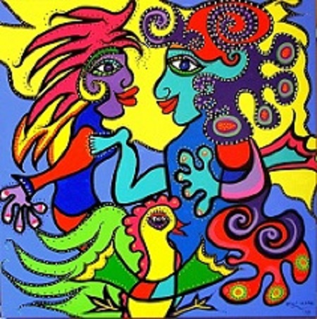 Mijn huidige stijl uit zich in krachtige figuren die in zichzelf geloven, hoop hebben op een goede toekomst en de moed hebben om beslissingen te nemen. Zij delen de blijdschap met hun omgeving maar zijn elkaar ook tot steun. De kleuren zijn nog intenser geworden en de lijnen nog krachtiger.